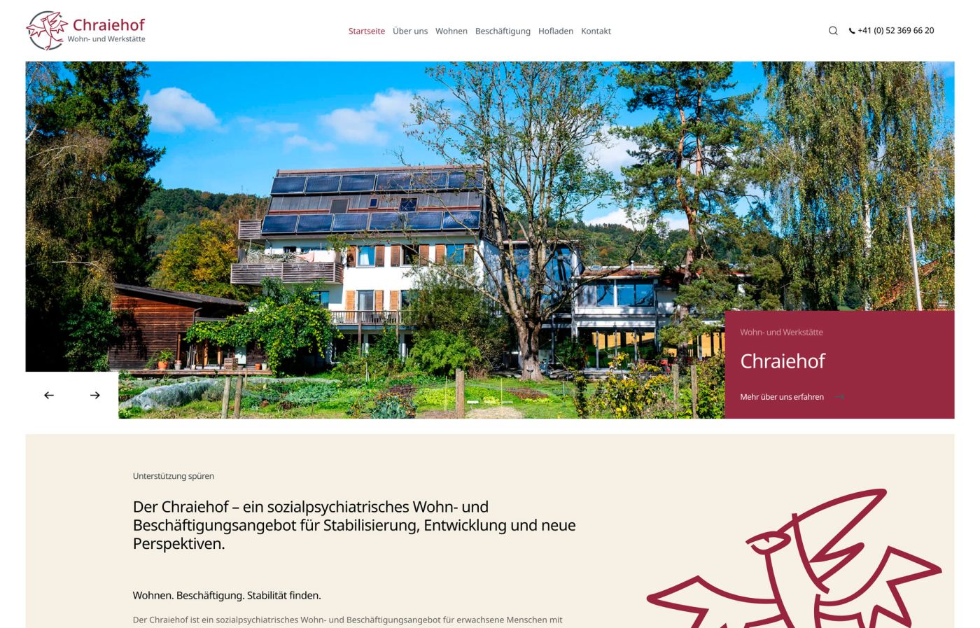 Mit dem Chraiehof – einem sozialpsychiatrischen Wohn- und Beschäftigungsangebot für Stabilisierung und neue Lebensperspektiven – durften wir unser erstes Projekt in der Schweiz umsetzen. Gemeinsam mit dem Team haben wir eine klare, nutzerfreundliche und wertschätzende Online-Präsenz geschaffen.