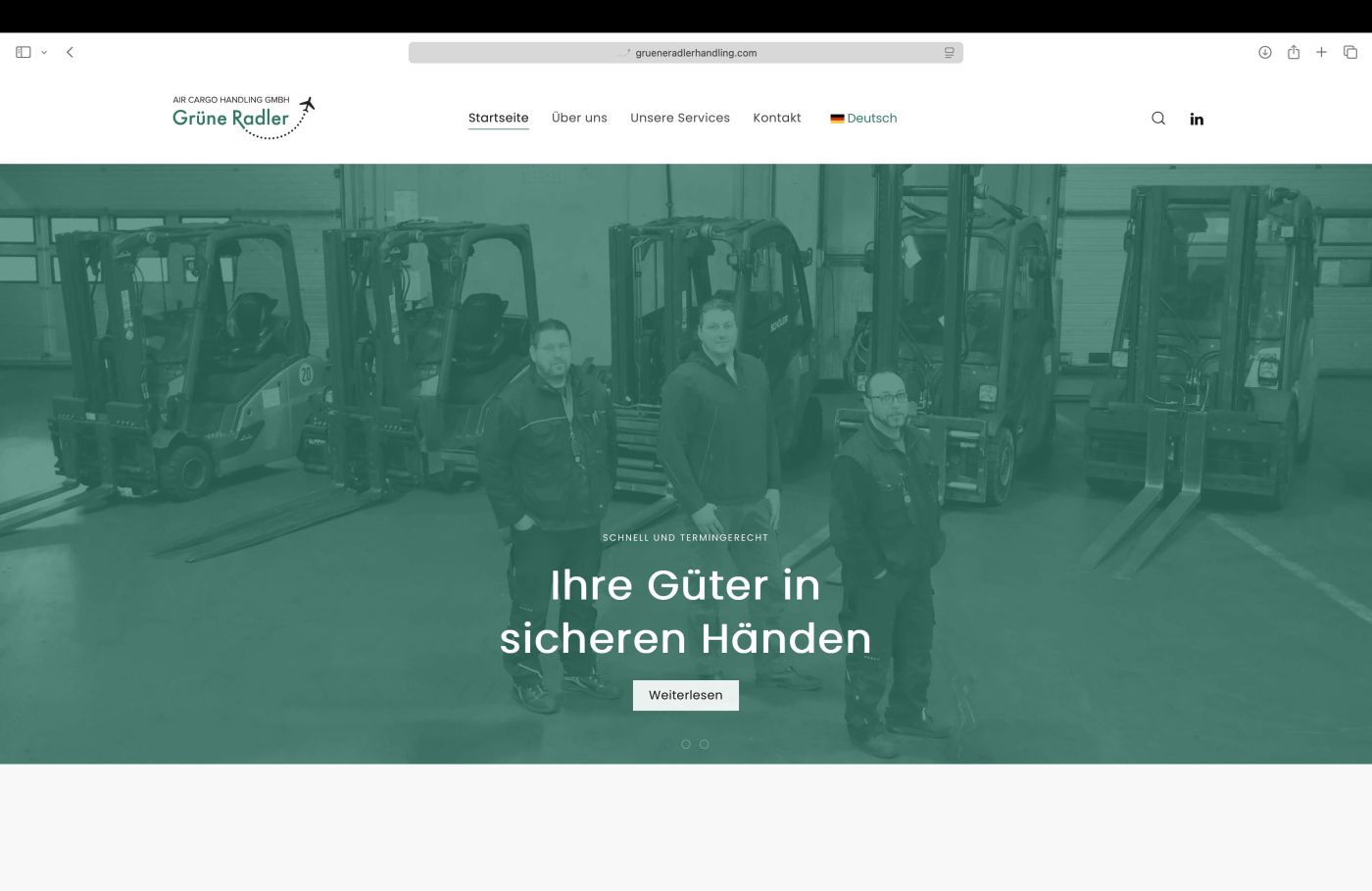 Ende Februar konnte die neu gestaltete Internetseite termingerecht online gestellt werden. Neugierig? Im Internet auf www.grueneradlerhandling.com findet sich ab sofort die Internetseite der Grüne Radler Air Cargo Handling GmbH.