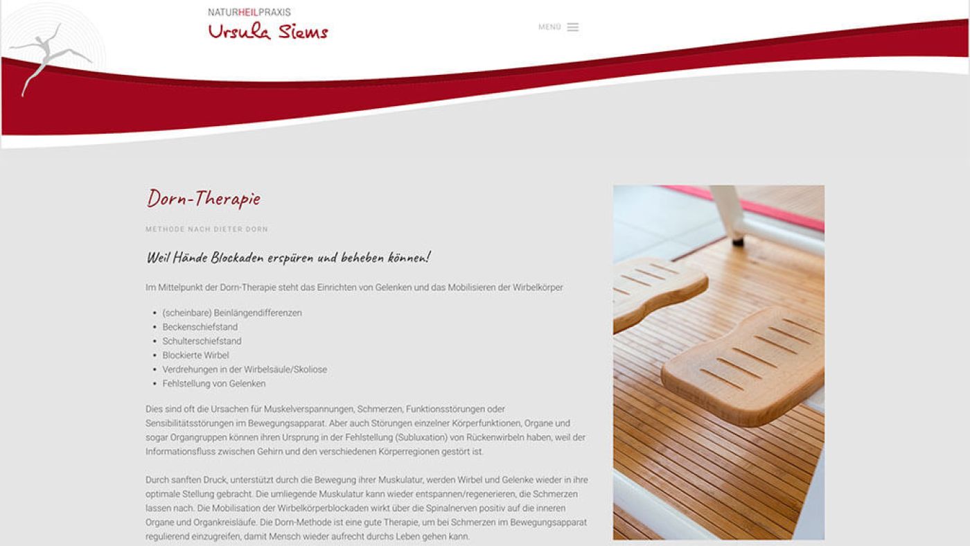 Bereits seit Längerem sollte das bestehende Erscheinungsbild der Naturheilpraxis Ursula Siems in Hirschberg auch als Webseite umgesetzt werden. Nachdem bei einer anderen Agentur dies nicht zum gewünschten Resultat führte, trat Ursula Siems an uns heran.