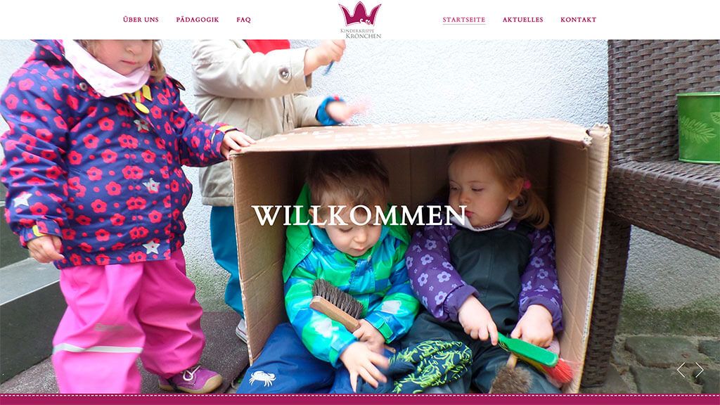 Zahlreiche Bilder und Galerien vermitteln dem Betrachter ein umfassendes Bild, die Pädagogik und der Anspruch der Kinderkrippe wird ebenfalls entsprechend übersichtlich und informativ dargestellt. Aktuelle Informationen und Formulare können im Blog bzw. im FAQ-Bereich ebenfalls leicht gefunden bzw. heruntergeladen werden. Link zur neuen Webseite: https://www.kinderkrippe-kroenchen.de