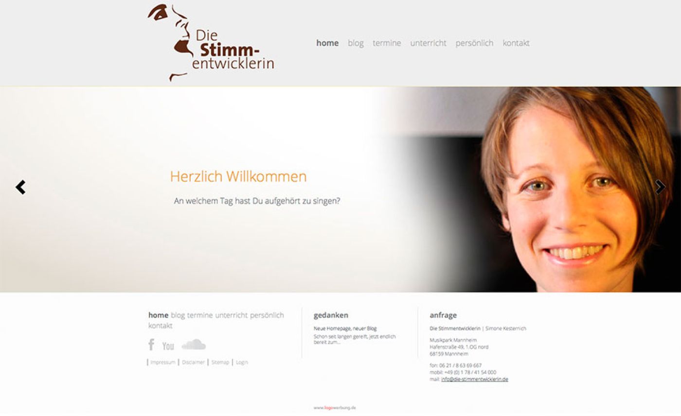 Bereits 2012 entwickelten wir für Simone Kesternich einen neuen Auftritt. Zwischenzeitlich fokussiert sich die Musikerin und Gesangscoach(in) auf die Stimmbildung bzw. Gesangsunterricht. Daher lage es nahe, auch den werblichen Auftritt entsprechend auf dieses Thema zu fokussieren. Die neue Seite ging am 20. Oktober 2014 online.