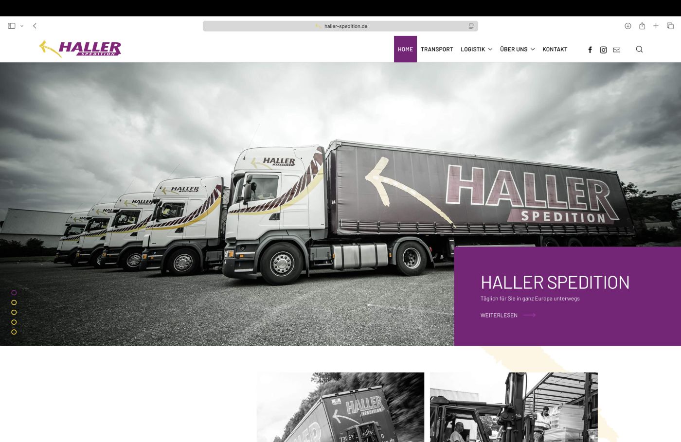 Täglich in ganz Europa unterwegs – Website für Haller Spedition in Ebersbach/Fils