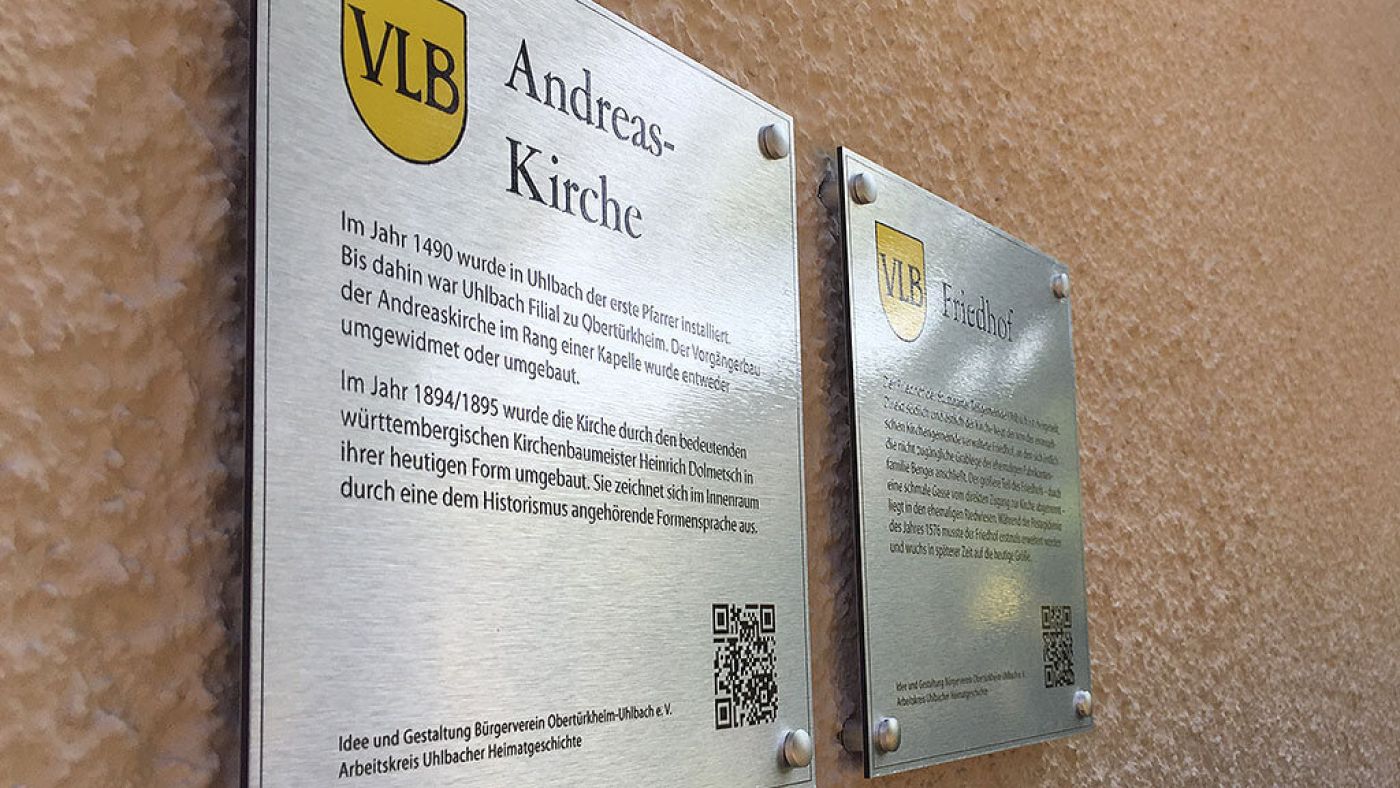 Heute ist feierliche »Enthüllung« weiterer Hinweistafeln des Bürgerverein Obertürkheim-Uhlbach e. V. – unter anderem an den Alten Rathäusern in Uhlbach und Obertürkheim. logowerbung produzierte wieder eine ganze Reihe edel-schlichte Hinweistafeln in klassischem Siebdruck. Der Bürgerverein Obertürkheim-Uhlbach e. V. weist mit diesen Tafeln auf historisch interessante Gebäude in den beiden Stadtteilen hin.