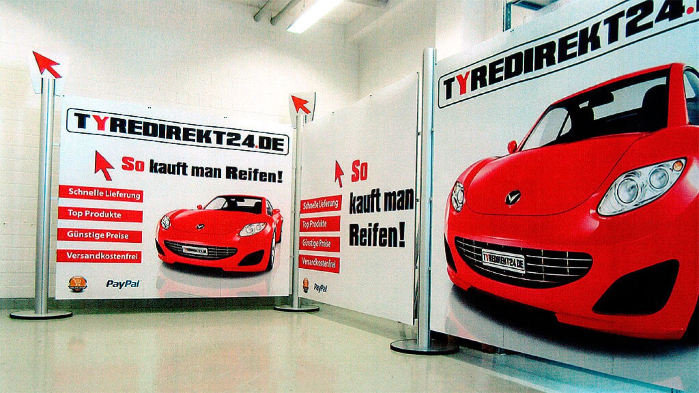 XXL in XXS: Messebanner-System für tyredirekt24